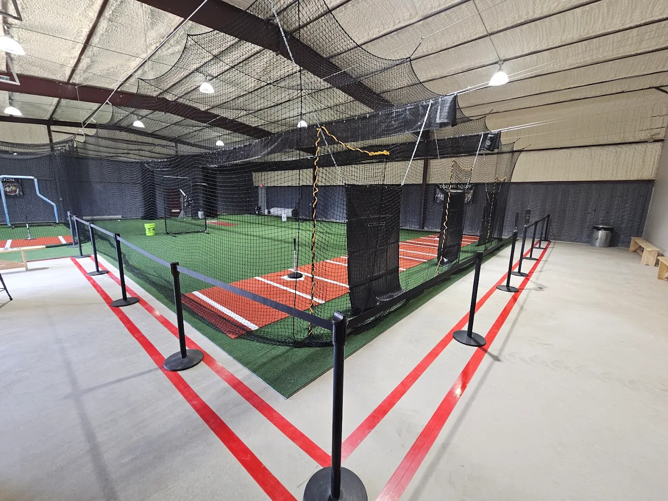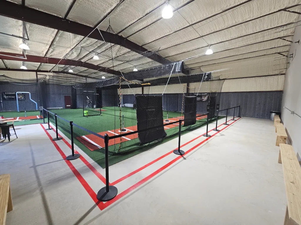 Indoor batting cages, private lessons, and HitTrax technology
